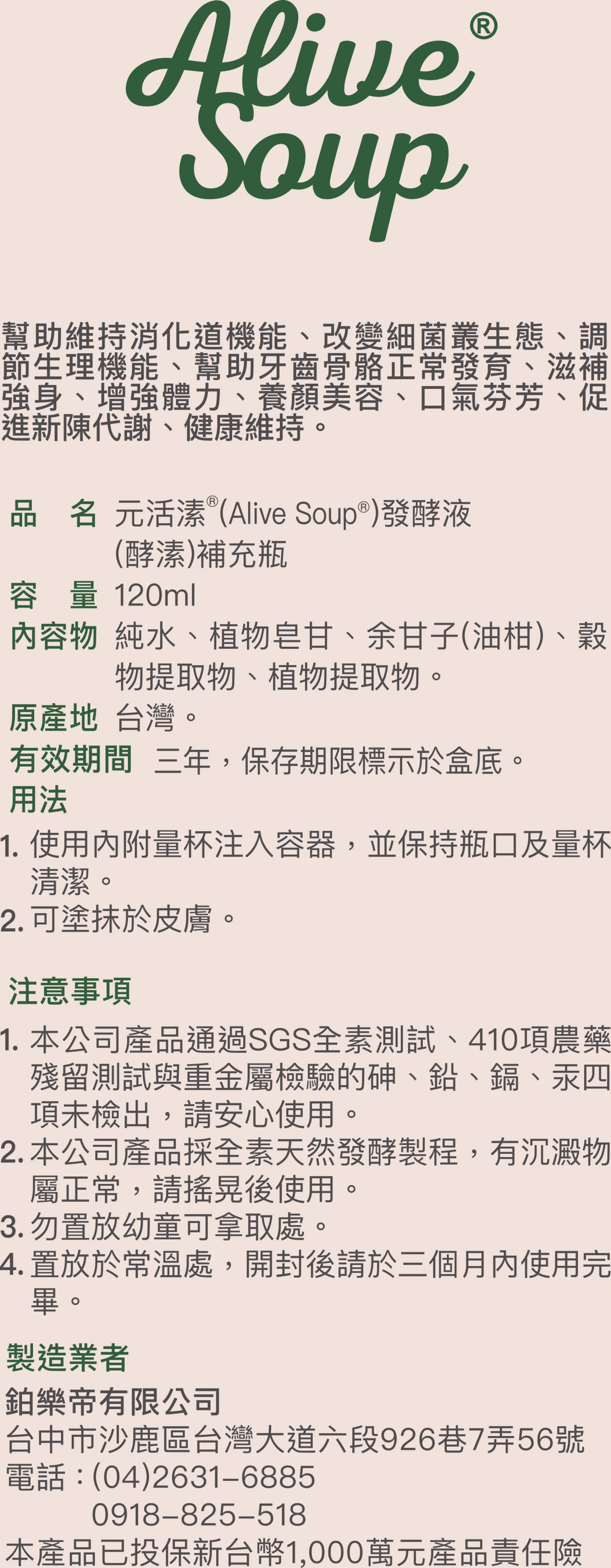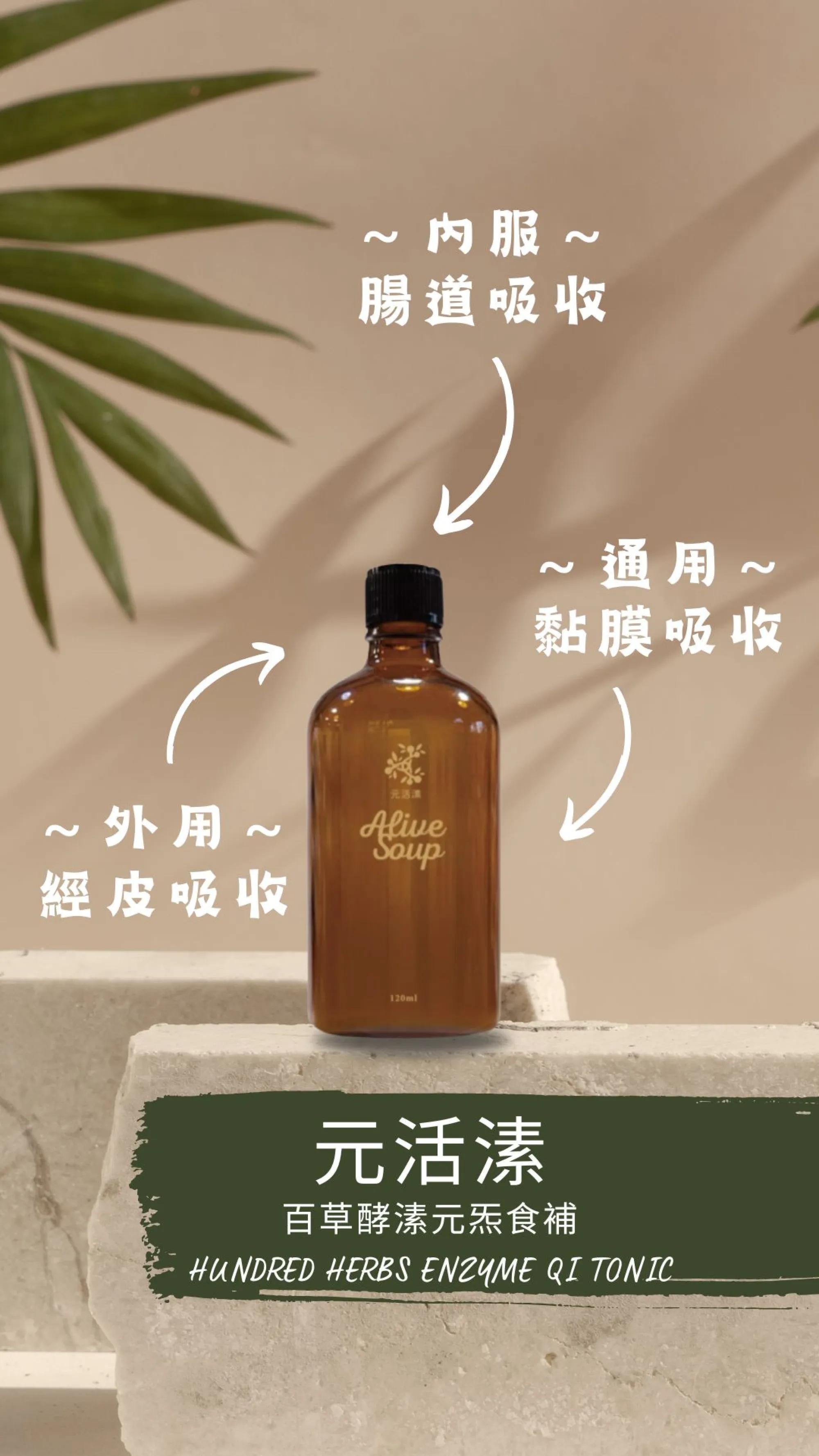 「元活溸」是一種由百種本草馴化之人體真菌群所生成的全素天然酵溸液,「溸」亦是「溯」的古字,用以傳達能回溯人體本源,能在人體外部預先消化生成的精微活性營養,具有高度人體生物利用率並能經由人體口腔黏膜及皮膚標靶吸收,且在能量層次上能與人體自身生命力產生共鳴的滋養方式。